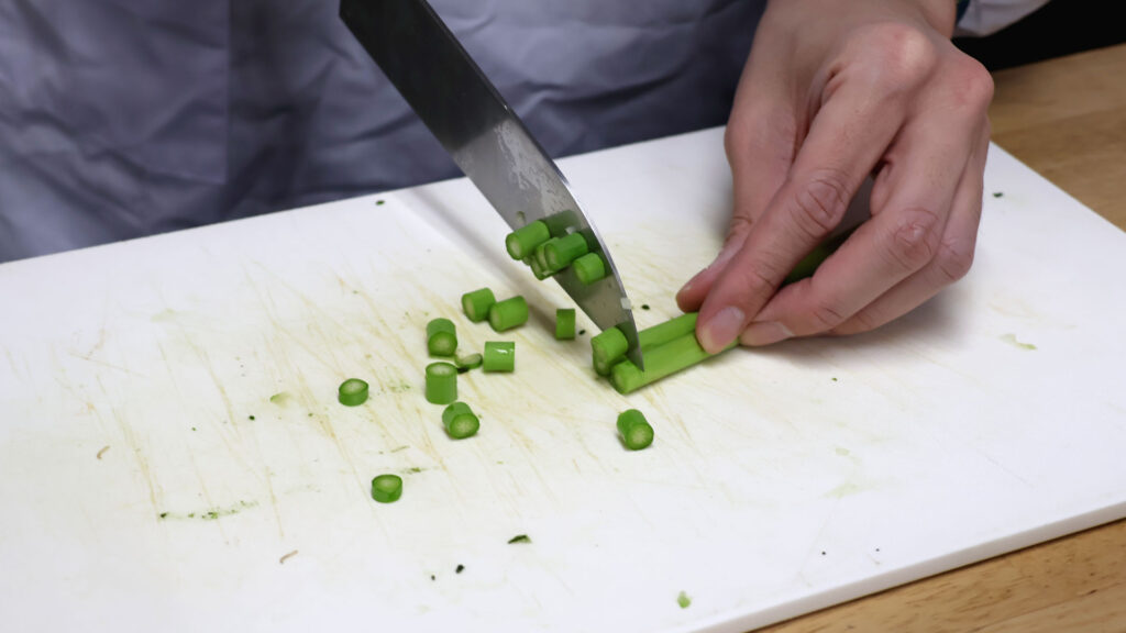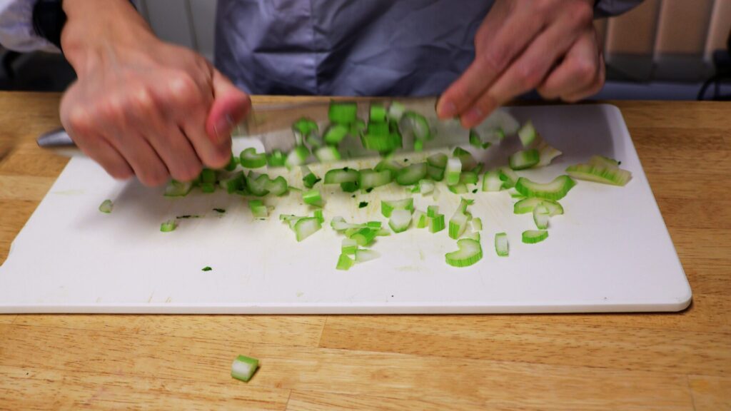 ▲セロリをみじん切りしようとして飛び散っている
