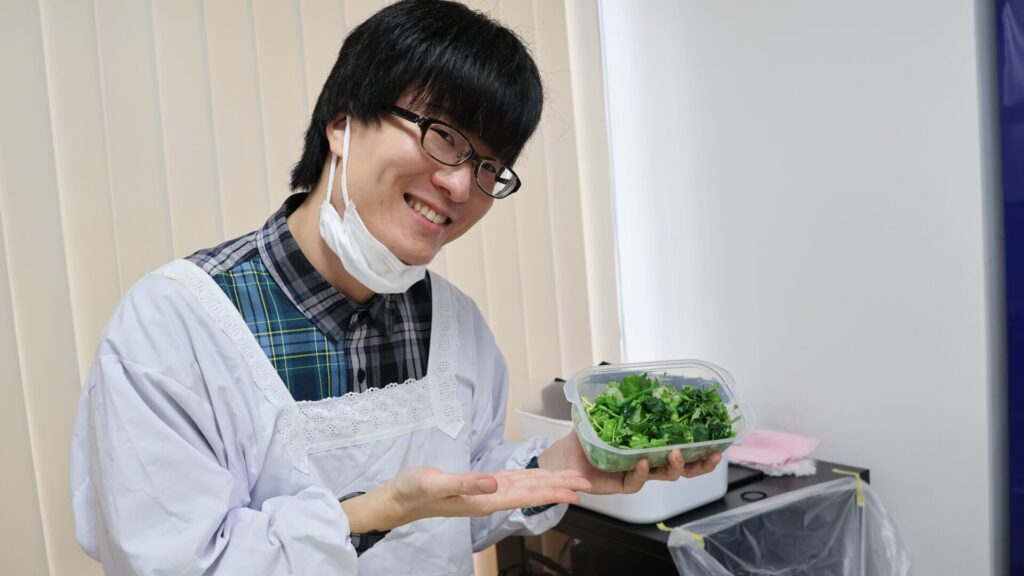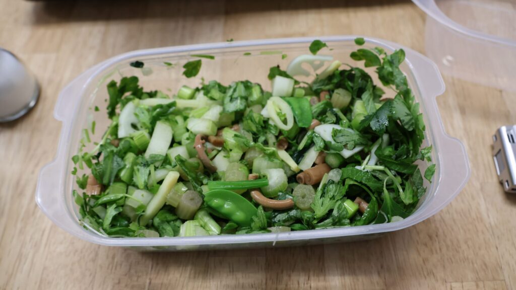 ▲とりあえず生の葉物野菜を切っていく
