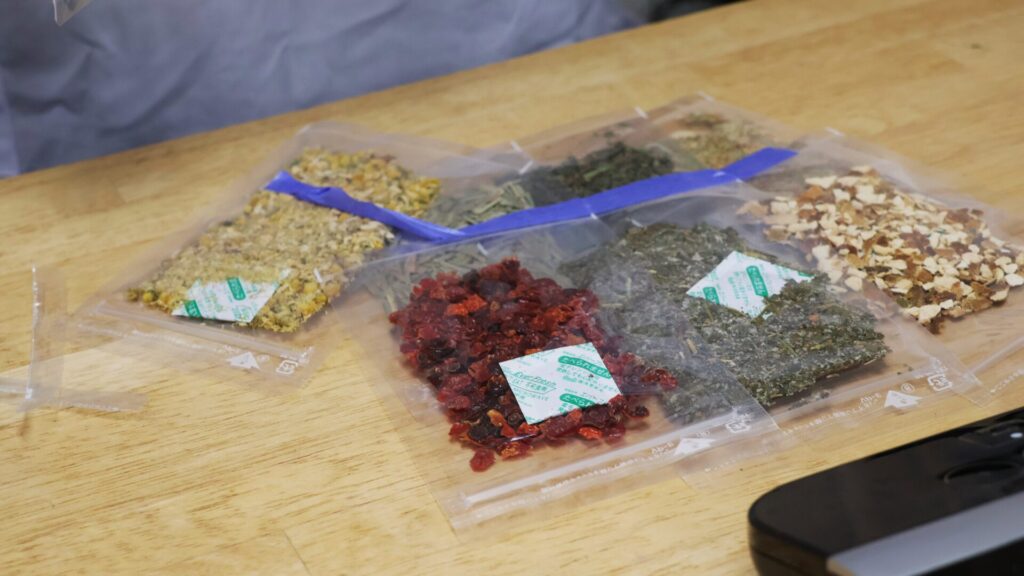 ▲野草茶(50種類以上配合)を混ぜ入れ……