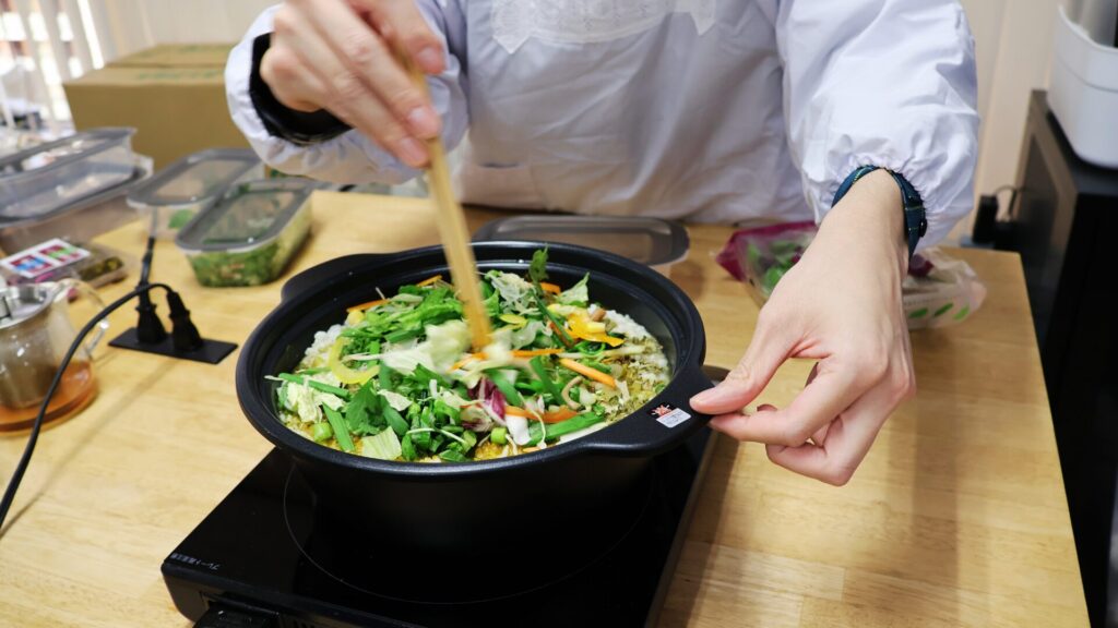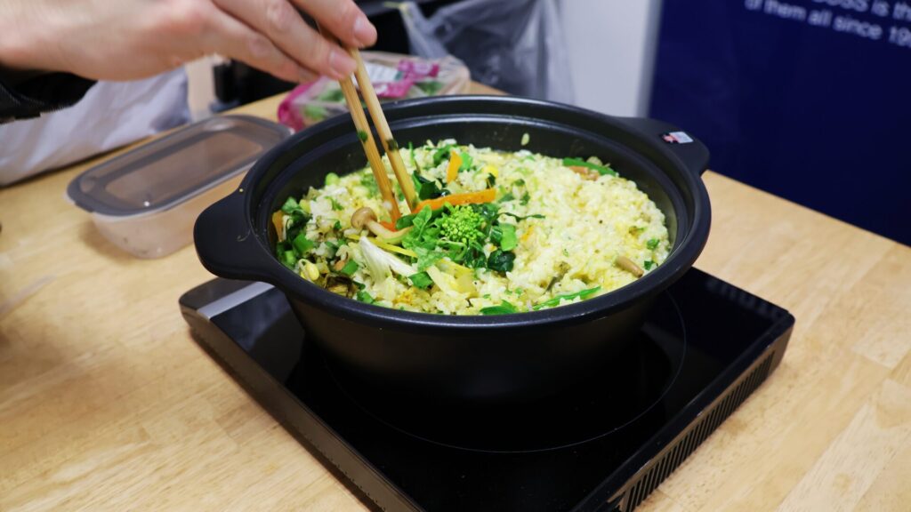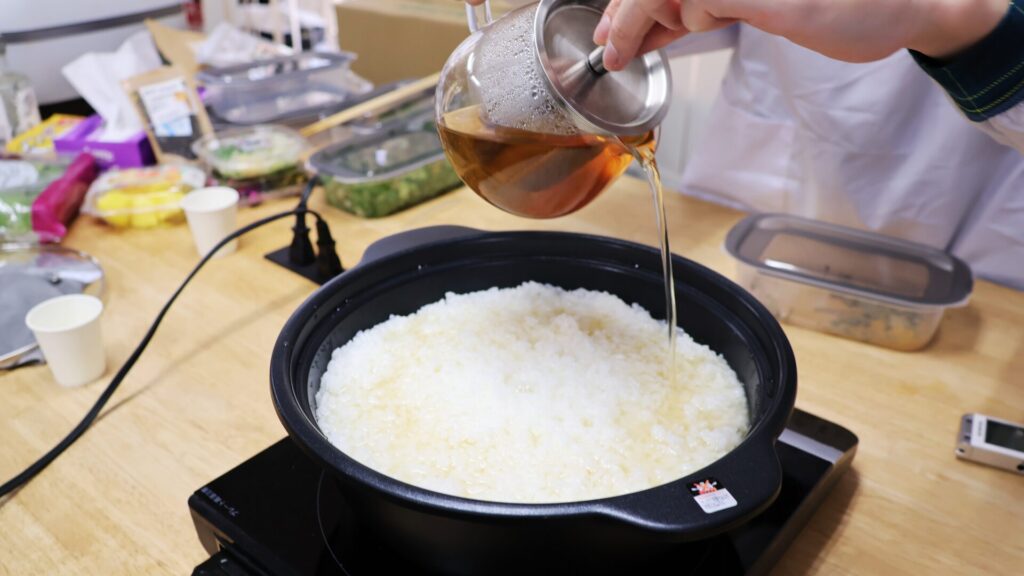 そろそろ前準備は終わりやね。各材料を米と混ぜてお粥にしていこう。