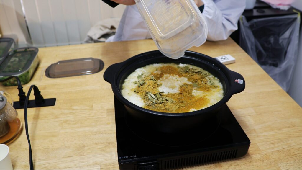 ▲乾燥スパイスを投入して乾燥材料を入れ終える