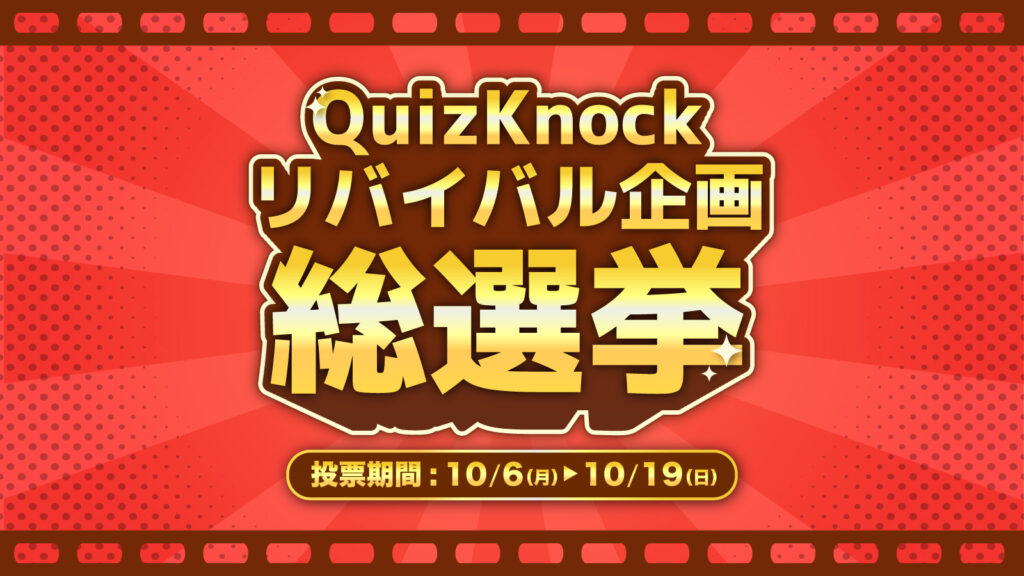 こちらの投票は、「QuizKnock10周年プロジェクト」の公式Xアカウントを使って行いますので、ぜひフォローをお願いします。最初の投票は10月6日(月)からスタートです。