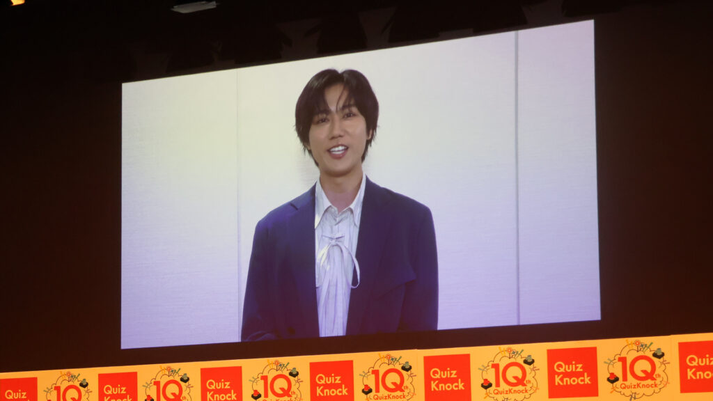 伊沢:投票ありがとうございました〜! これから集計作業に移るわけなんですが、その間、QuizKnockが大好きだというある方から、お祝いのVTRを頂いております。