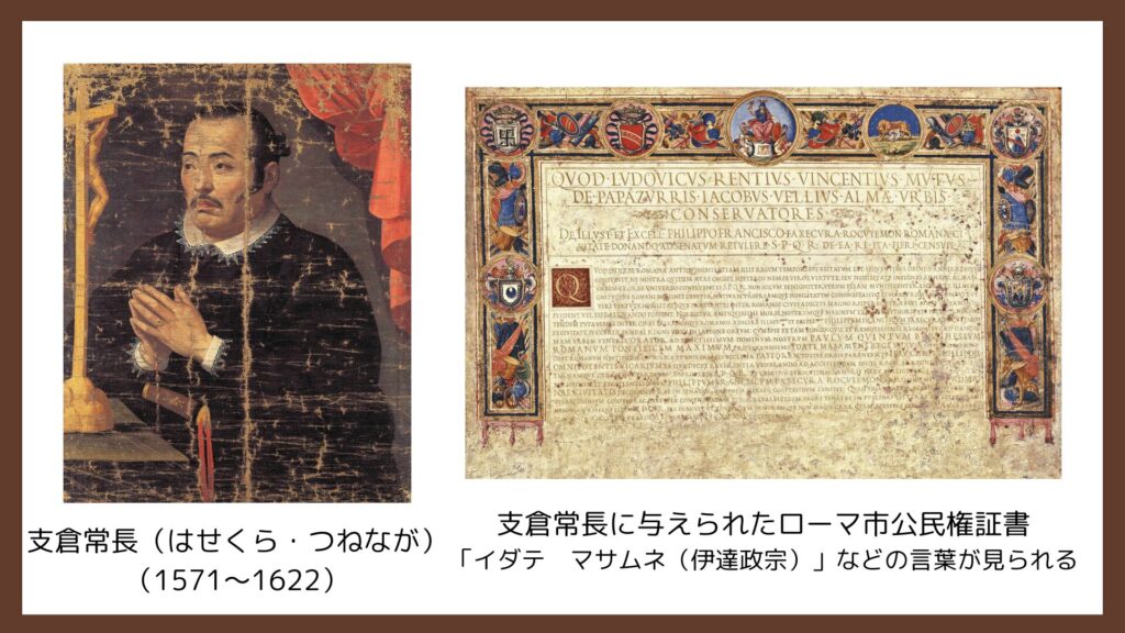 ところで、ローマで発行された「支倉常長を貴族に列する」という内容の証書は現在まで残っており、この中には「伊達政宗」や「仙台」という言葉も見えます。政宗の名は遠くヨーロッパの人々にまで伝わったのですね。