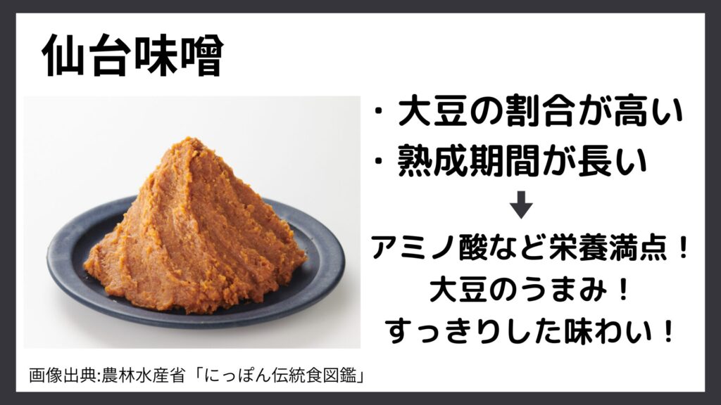 政宗は自分や身の回りの人のみならず、一般庶民の食にも気を配っていたようです。政宗が治めた仙台城下では味噌の醸造所が作られ、「仙台味噌」というブランドが生まれるまでになりました。江戸時代には米や塩の増産にも努めました。20世紀に「ササニシキ」や「ひとめぼれ」といったブランド米が宮城県で生まれたのも、偶然ではなかったのかもしれません。