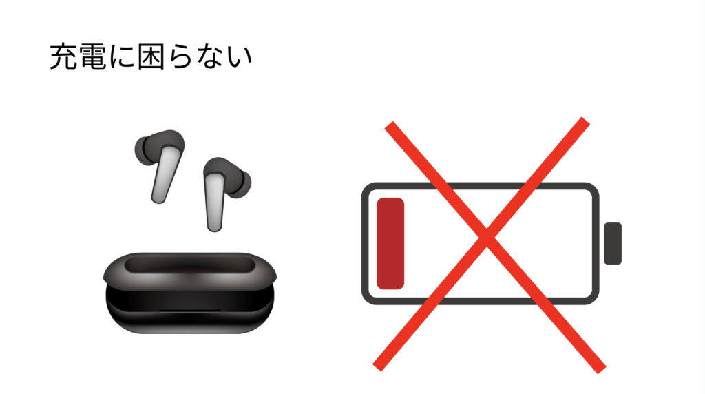 イヤホンを充電しようと思ったら、ケースの方が充電切れで……ということは時々あるな。