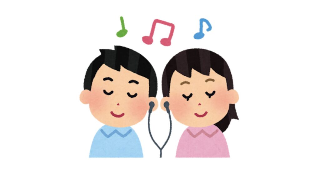▲カップルが片耳ずつ使用して音楽聴くやつ