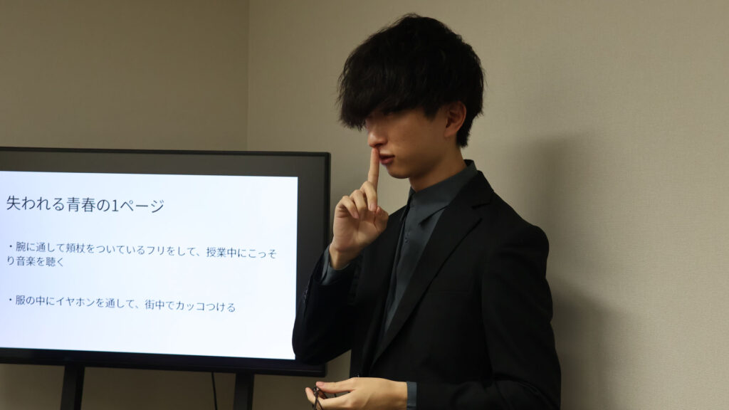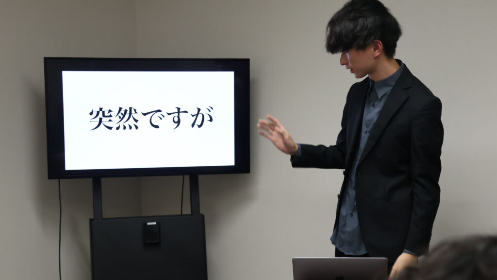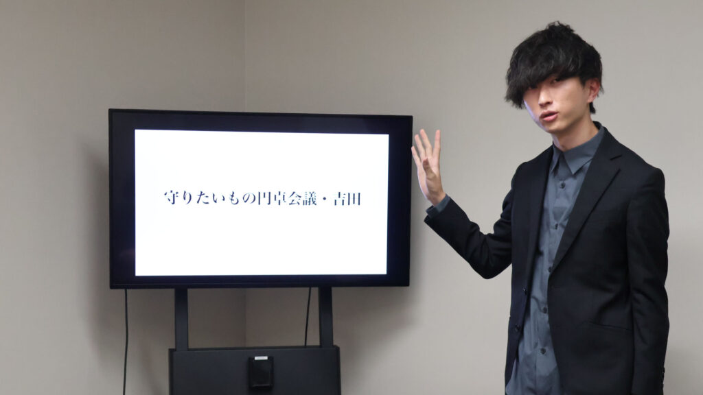 最初のプレゼンターは気鋭の学生ライター・吉田。彼が何よりも「守りたい」と考える、忘れがちだけど大事なものとは? 重めの前髪の向こうに隠された情熱が今、ほとばしる──。