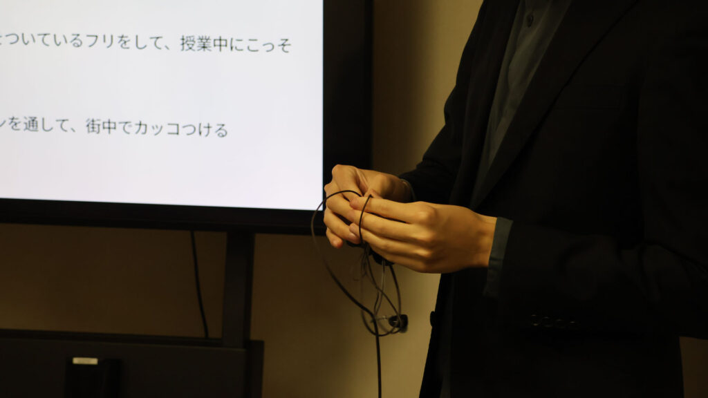 ユーザーを減らしつつある有線イヤホンが、実は生活の様々な場面にフィットすることを指摘した吉田。便利なワイヤレスイヤホンを否定することなく、両者の共存を探った姿勢にも拍手が送られた。