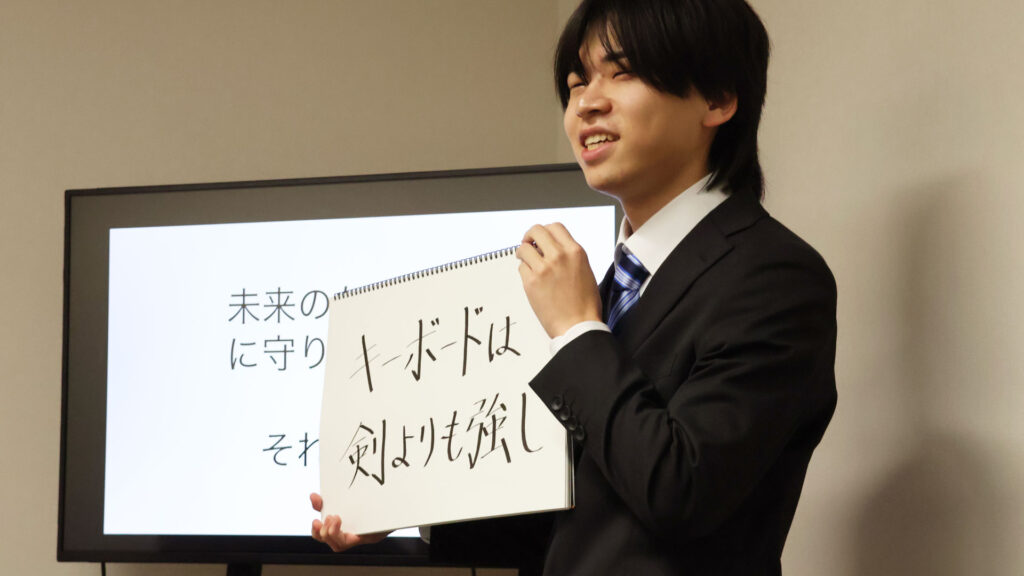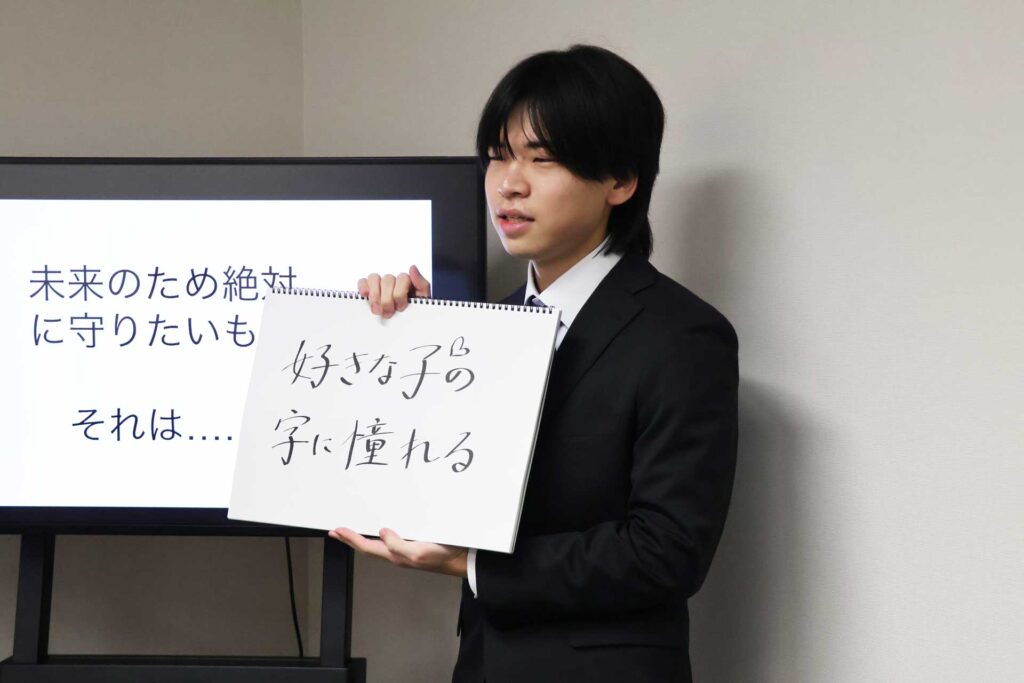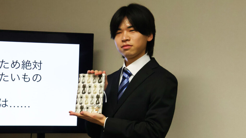 文書といえばデジタルが当たり前になった私たちの生活に、新たな光を投げかけた加納のプレゼン。単なる懐古趣味にとどまらない内容で、普段はデジタル派の3名からも高評価を引き出した。