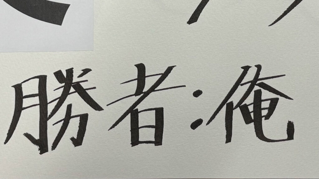 どちらかというと、下の「勝者:俺」の字の方がスタイリッシュじゃないか?