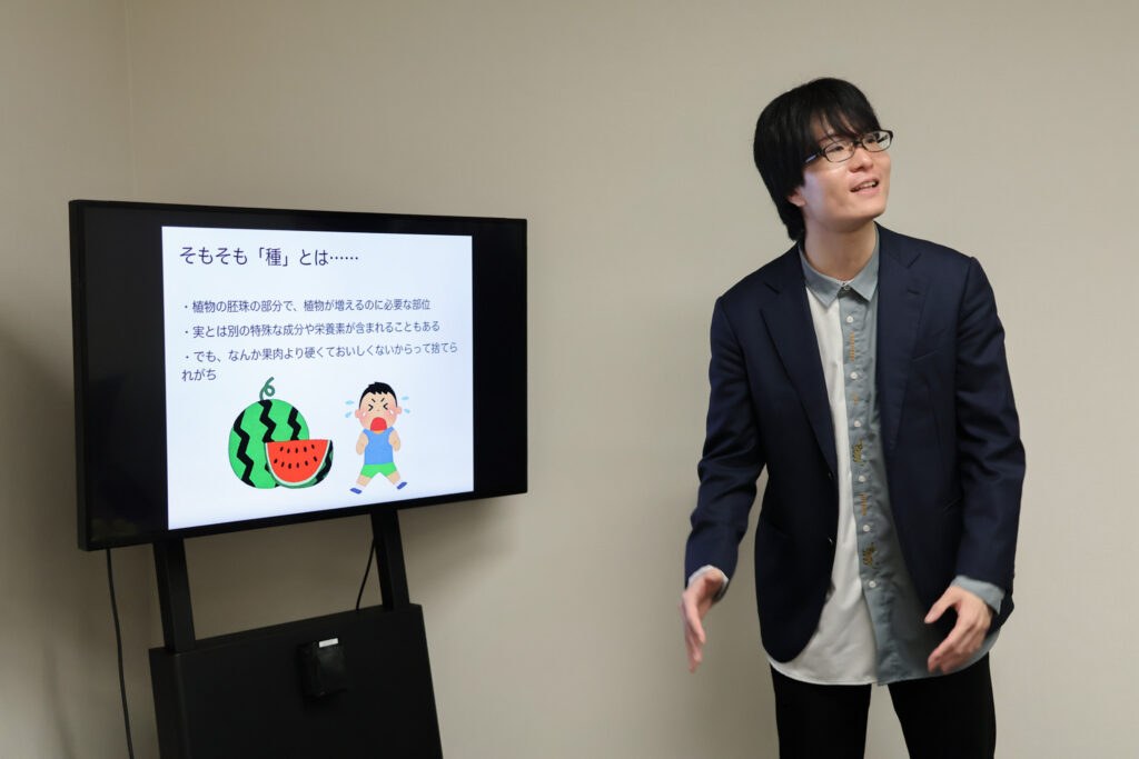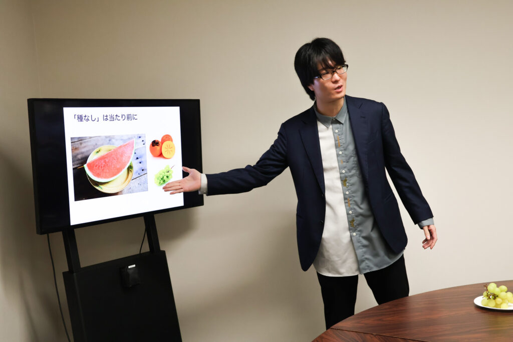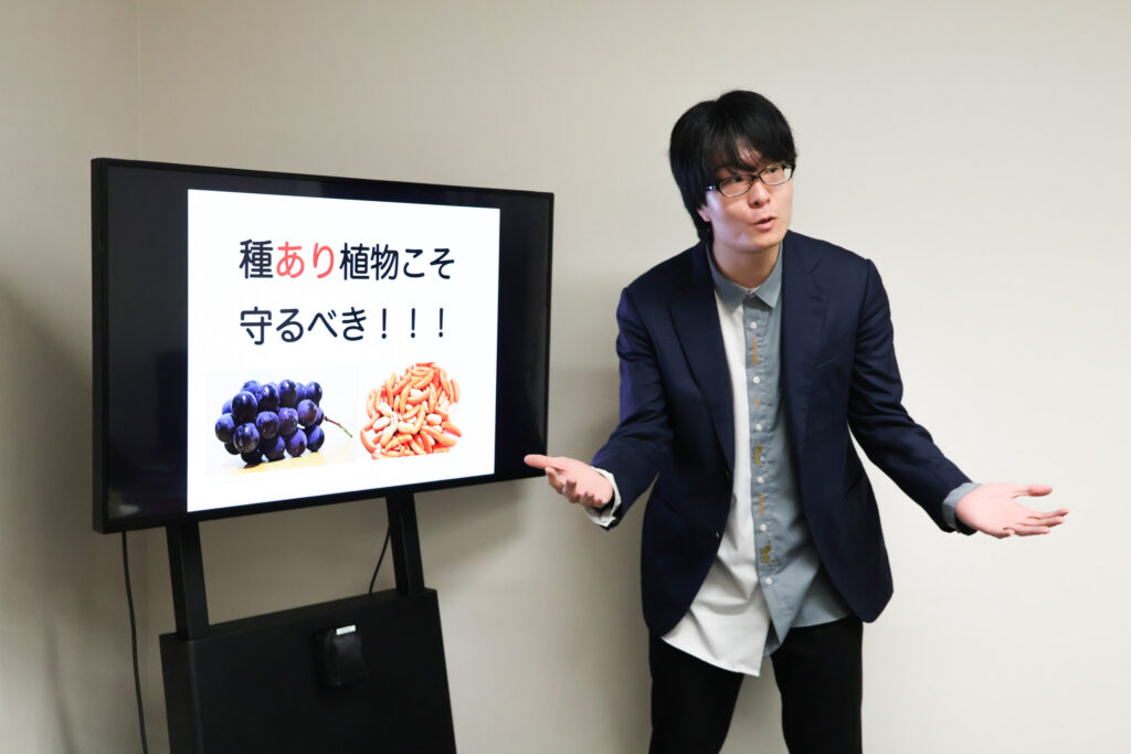 前回のリンゴに続き果物を持参してのプレゼンで聴衆の胃袋、もとい心をがっちり掴んだシャカ夫。小さな種から作物全般まで守らんとする志の高さに、称賛の声が送られた。