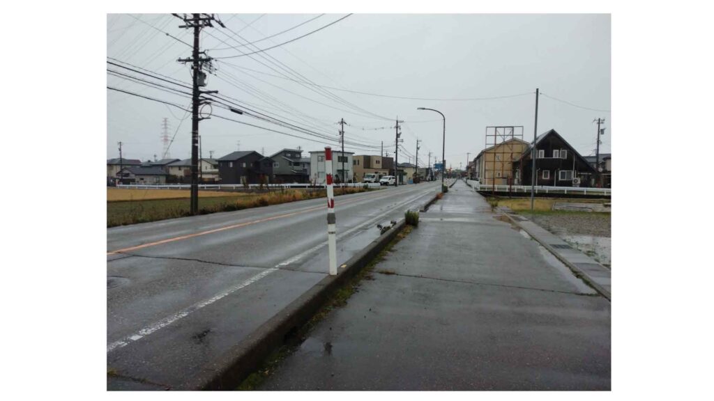 住宅地もいくつか通り抜けましたが、比較的最近建てられた家が多いように感じます。これ、実はこの後お話しする舟橋村の秘密に関係しているので、ぜひ覚えておいてください……!