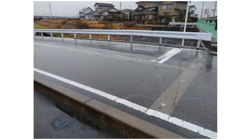 年間を通して水温がほぼ一定な地下水を道に撒き、路面の積雪や凍結を防ぐための設備で、この時期はしばしば作動する様子が見られます。発祥は新潟県ですが、隣接する富山県内でもあちこちの道路で整備されています。