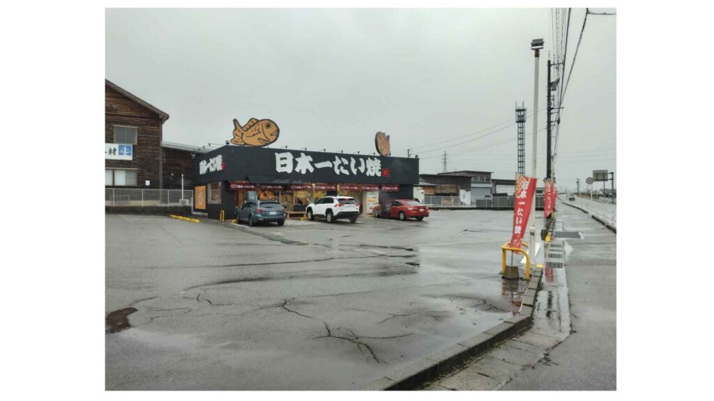 お邪魔したのは日本一たい焼・富山舟橋店。昨年(2024年)の11月にオープンしたお店とのことで、開店祝いの花輪が飾ってありました。
