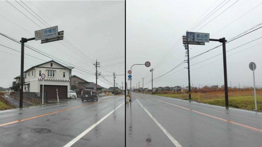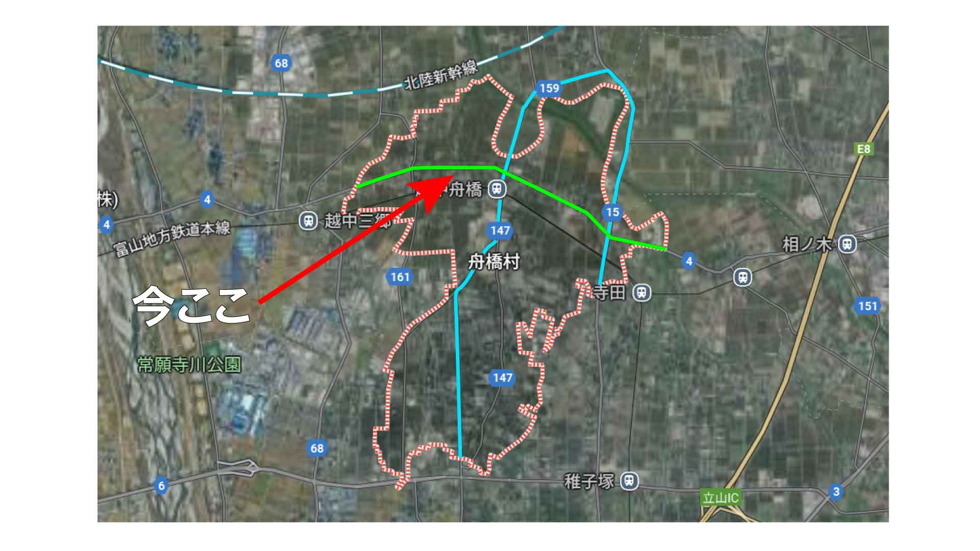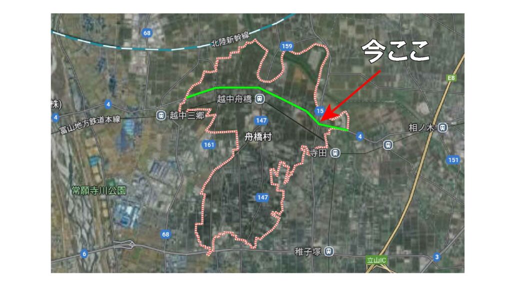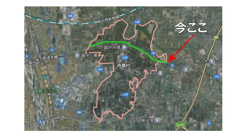 さて、ついに舟橋村の西の村境に到着しました。この先は富山市です。