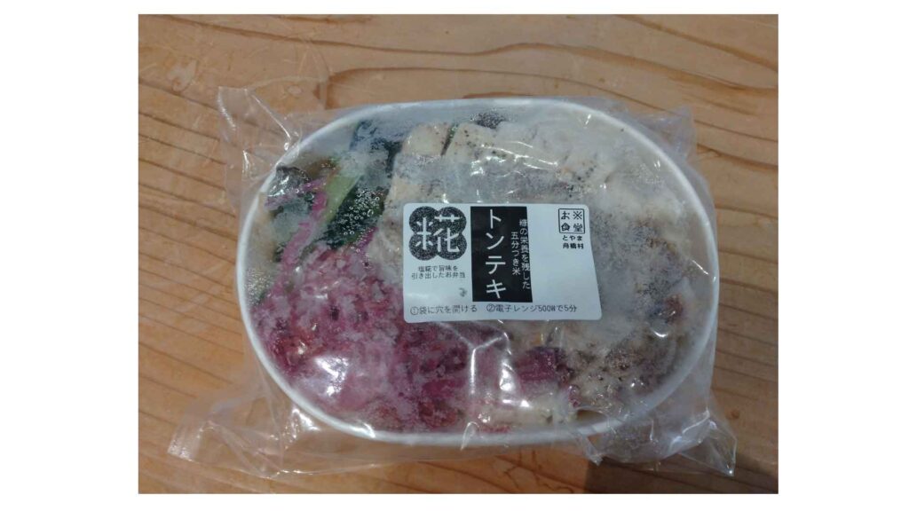 少し考えて、トンテキ弁当をチョイス。備え付けのレンジで温めます。