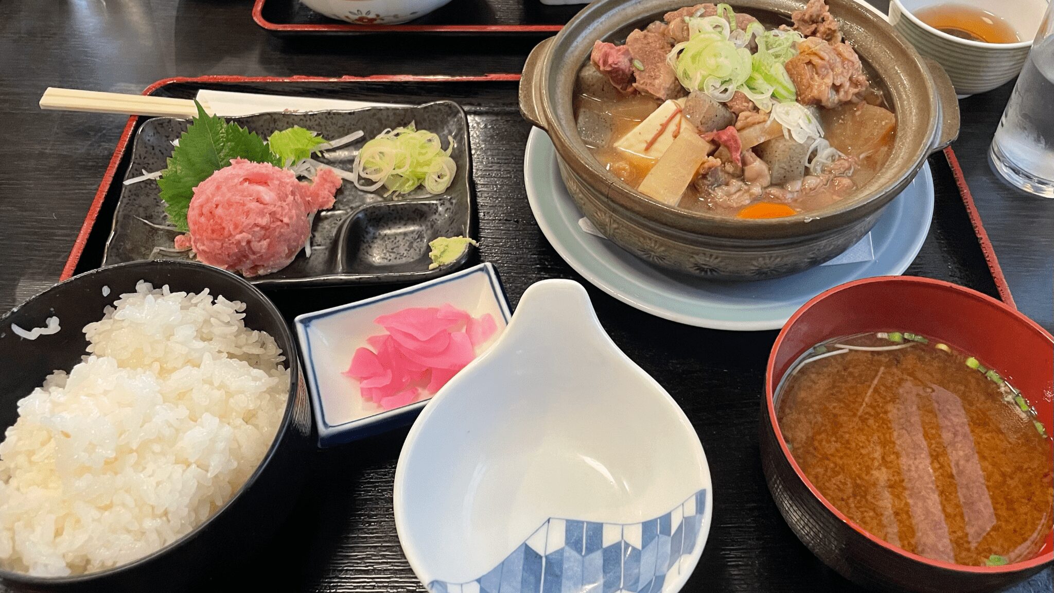 お刺身と唐揚げ、ネギトロと鍋……。こんなランチ食べたことないです。安価でボリューミーとはまさに学生メシの中の学生メシなのかもしれない……。