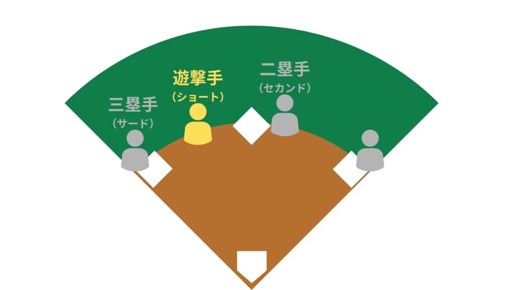 遊撃手は野球における二塁手(セカンド)と三塁手(サード)の間にいるポジションで、ショートと呼ばれることもあります。守備範囲が広いだけでなく、外野からの送球の中継やダブルプレー時の連携など担う役割が多く、現代では守備の花形とされています。