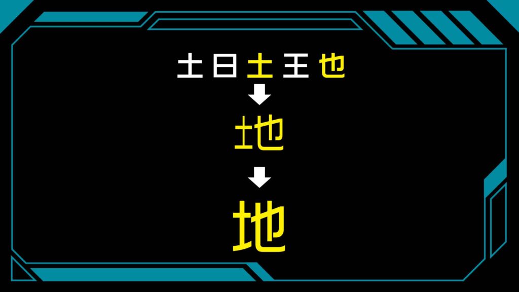 「土」「也」を組み合わせると「地」という漢字ができます。