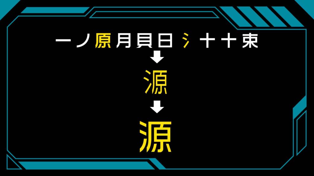 「原」「氵」を組み合わせると、「源」という漢字ができます。