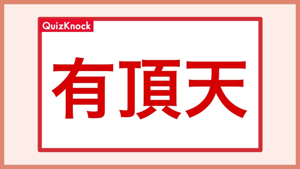 正解は、「ナ」「月」から「有」、「丁」「一」「ノ」「貝」から「頂」、「一」「大」から「天」となり、「有頂天」でした。ダミーの文字は「豆」になります。