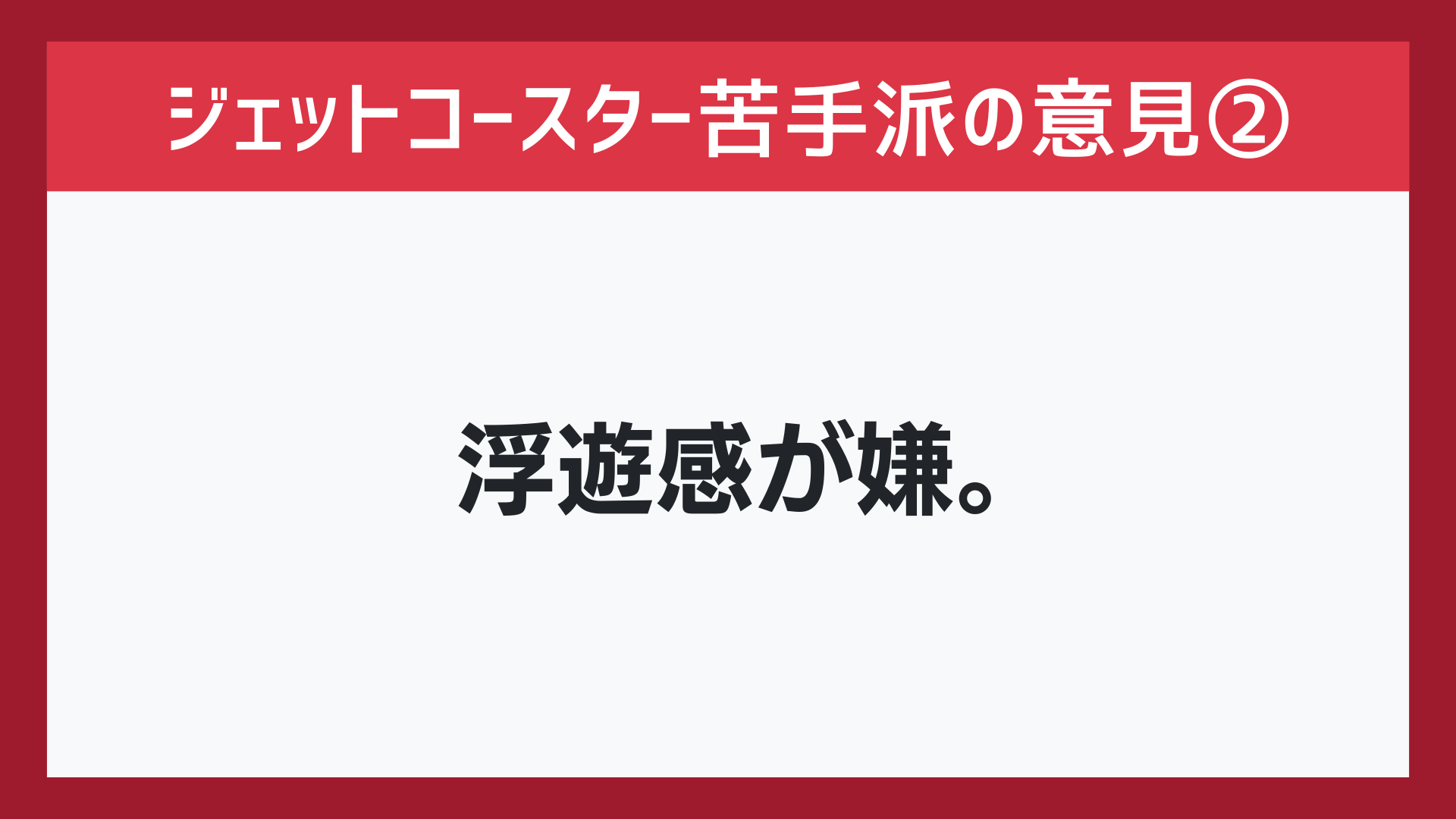 では、次は「ジェットコースター苦手派」の主張も聞いていきましょう。まずは、加納の意見から。