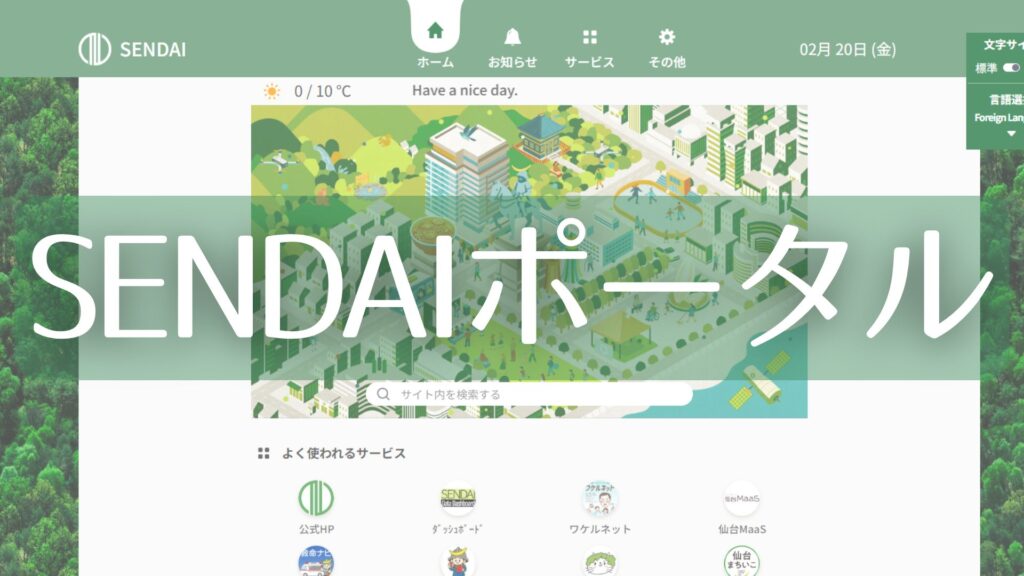 SENDAIポータルは、仙台市に関する様々な情報や便利な機能が集約されている、嬉しいものがいっぱい詰め込まれた仙台市公式のサービスです。