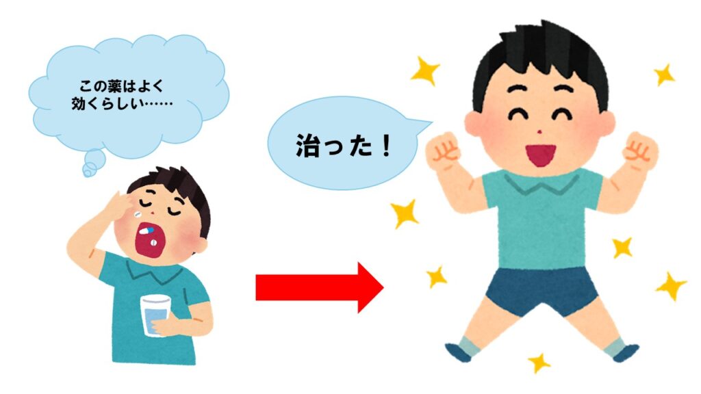 これはプラセボ効果(プラシーボ効果)と呼ばれる現象です。一般的には薬学の分野の言葉で、「プラセボ」とは何の効果ももたない「