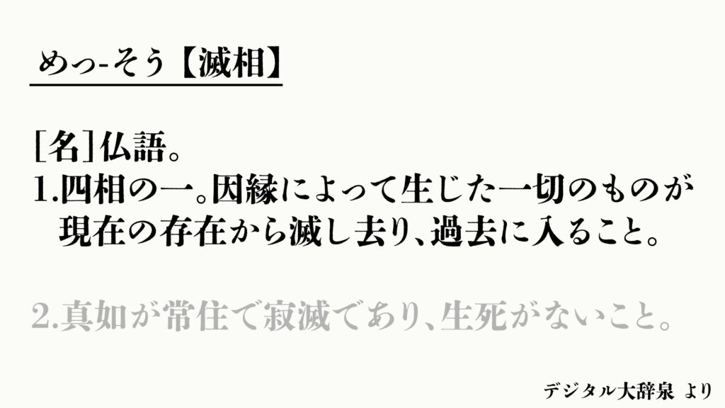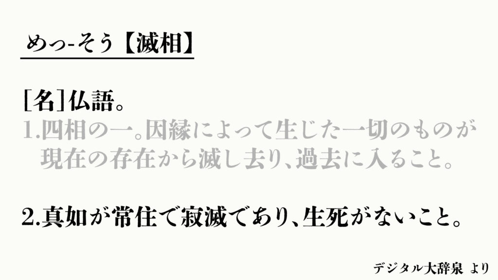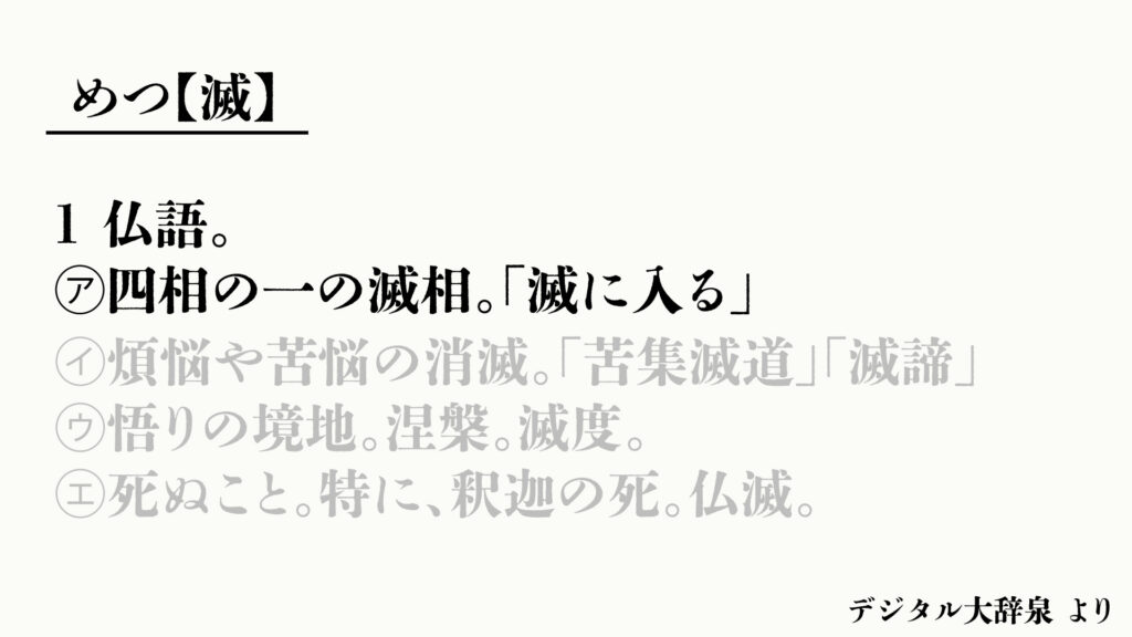 ただ、仏語としての「滅」を調べてみると少し世界が広がる。デジタル大辞泉を見てみよう。
