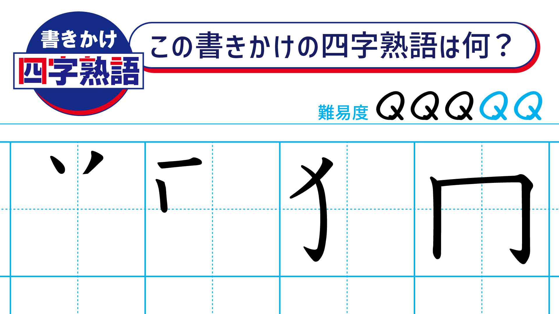 ある四字熟語を構成する漢字それぞれを、2画目まで書いた画像をお見せします。その画像を見て、何の四字熟語かをお答えください。