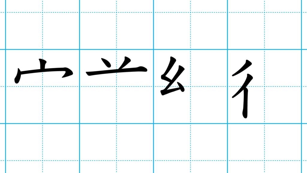 それぞれの漢字を3画目まで書いた画像がこちらです。
