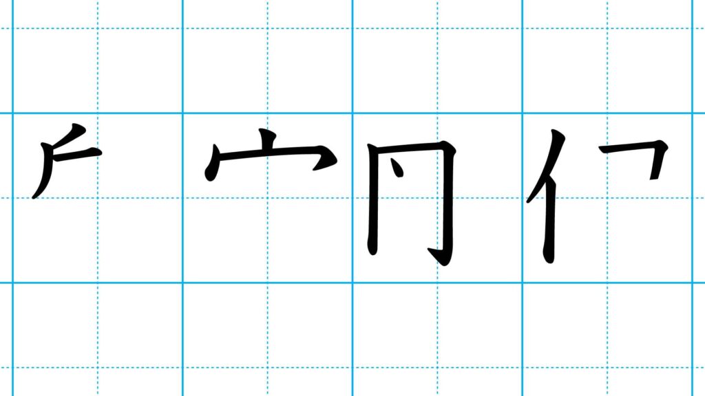 それぞれの漢字を3画目まで書いた画像がこちらです。
