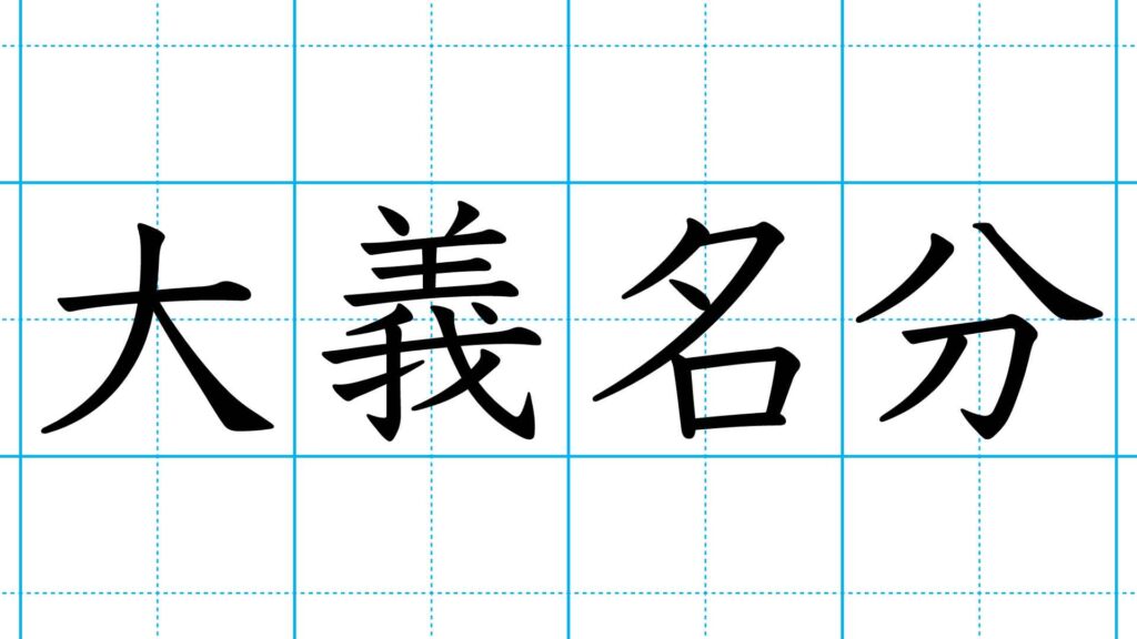「大義名分」は「行動の基準や根拠となる道理」を意味する四字熟語です。