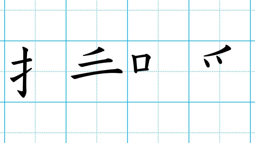 それぞれの漢字を3画目まで書いた画像がこちらです。
