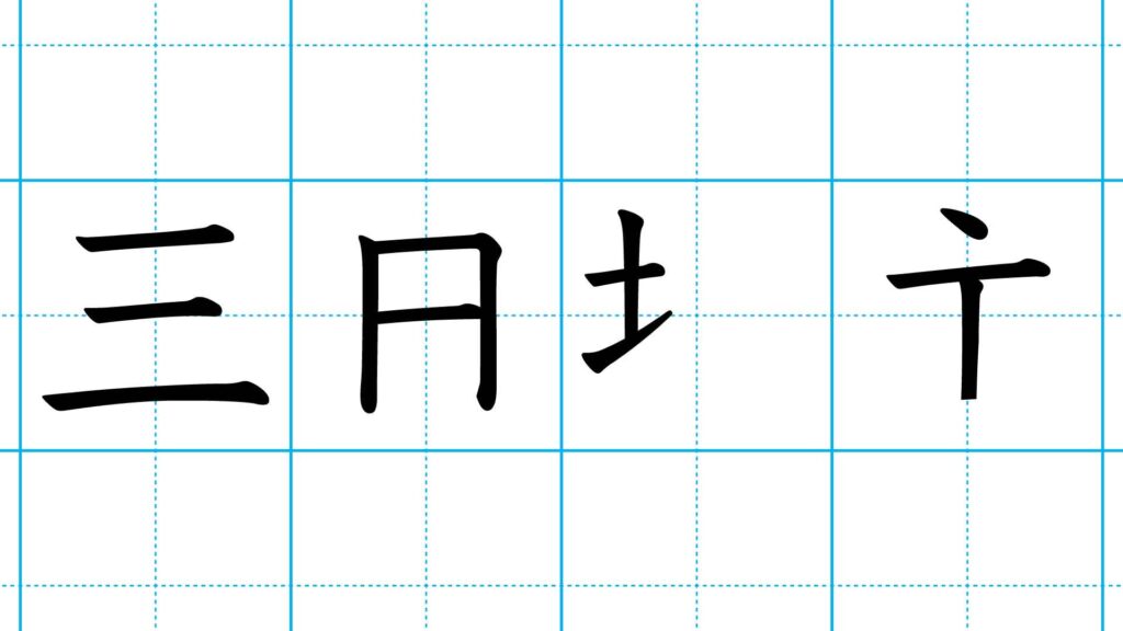 それぞれの漢字を3画目まで書いた画像がこちらです。