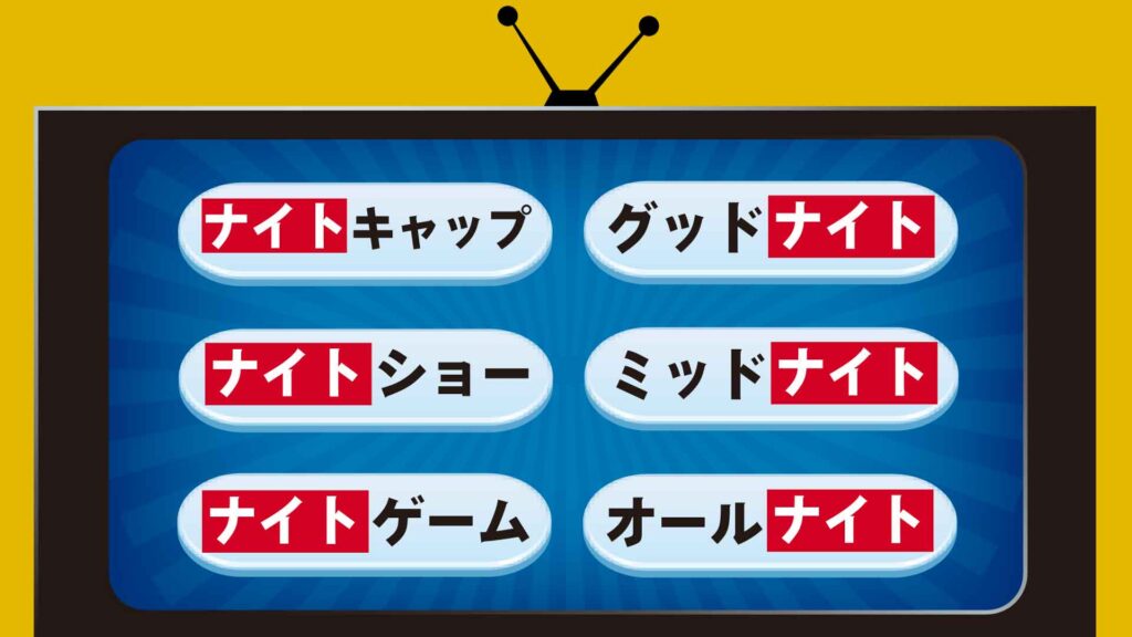 正解は、「ナイト」でした。以下の6つの言葉ができます。