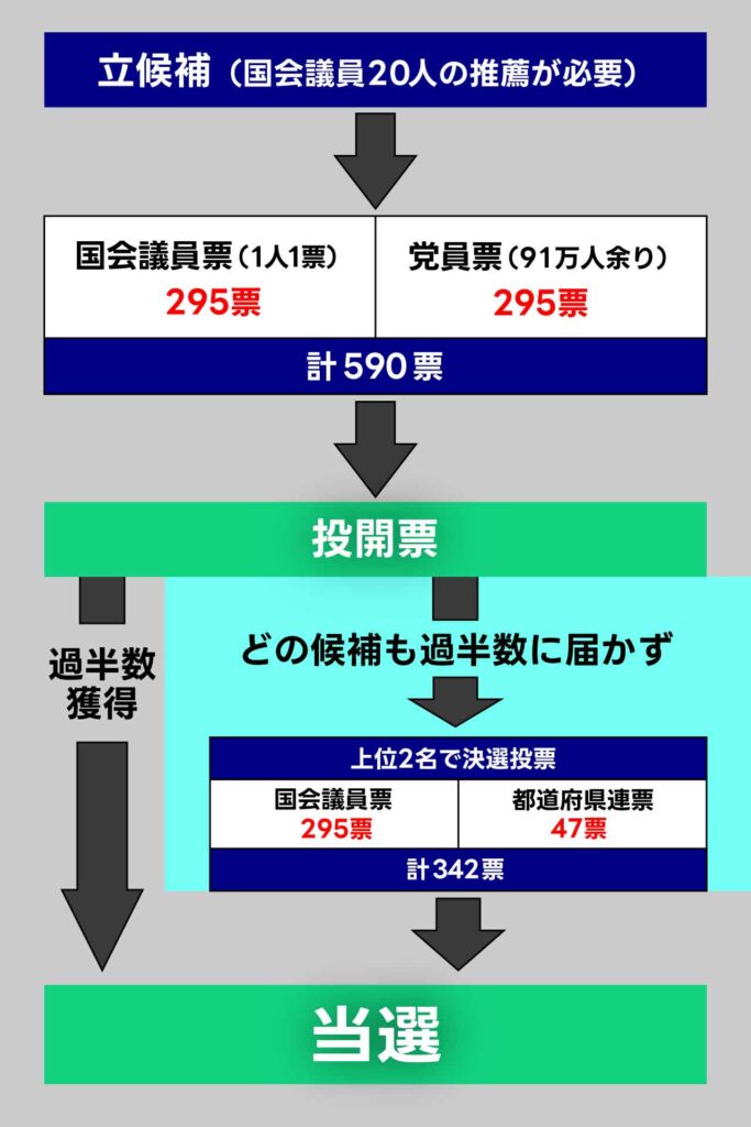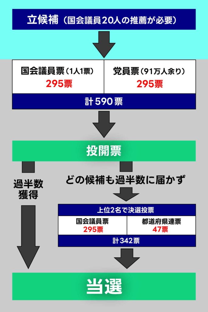 当日の総裁選挙に投票できるのは、以下の2種類の人々だ。