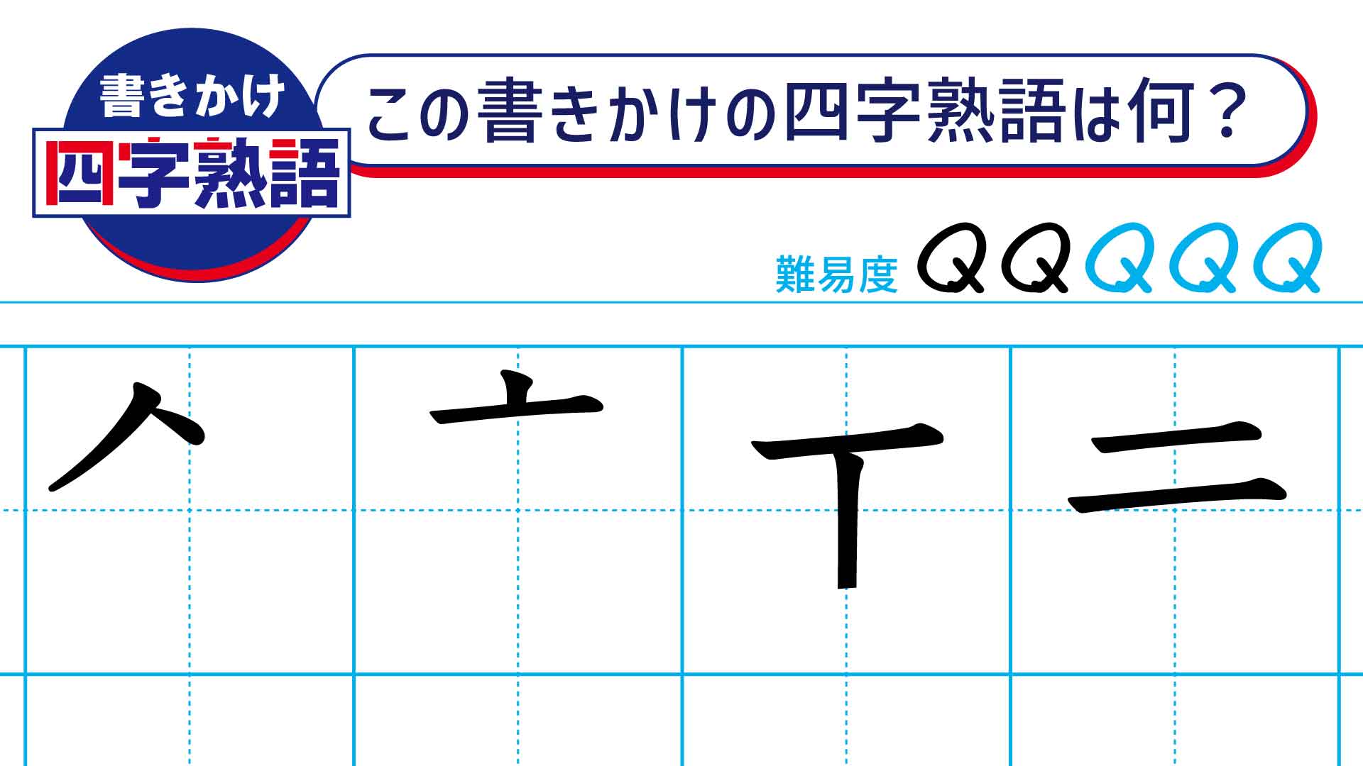 文字の「空白部分」だけが表示された画像を見て、どんな漢字かを当てる「塗りつぶし四字熟語」のお時間です。