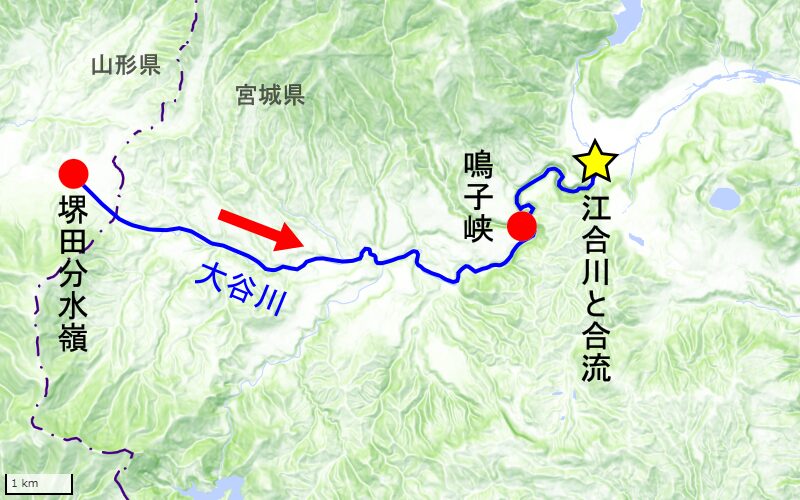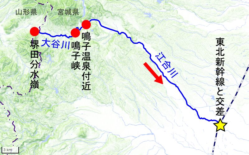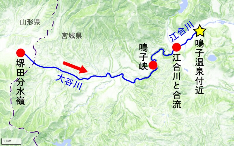 鳴子峡を通り過ぎてすぐ、北から流れてきた