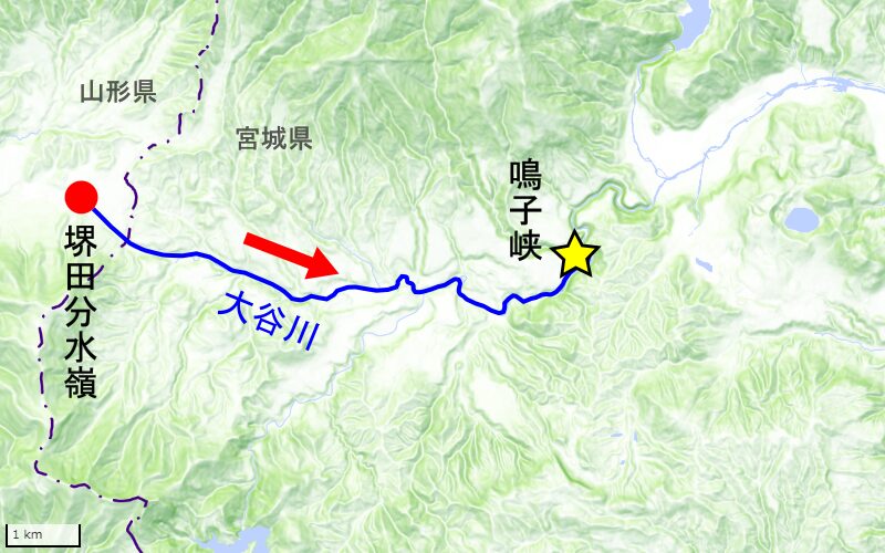 山形にある「川の分岐点」から、日本海と太平洋を目指す【それぞれ】