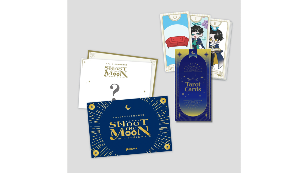 ▲「SHOOT THE MOON」は、QuizKnockメンバーのイラストが描かれたタロットカード22枚が付いてくるスペシャルなセット。カードはもちろんただのグッズではなく、謎解きにも使うものです