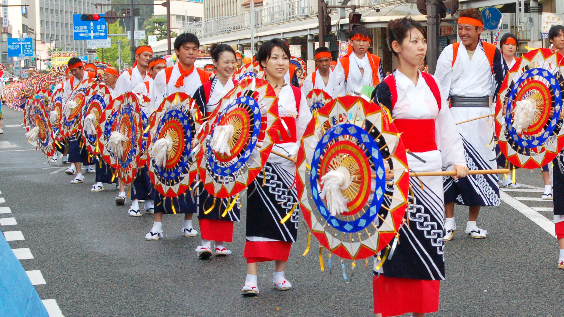「鳥取しゃんしゃん祭」といって、傘を手に踊る祭りですね