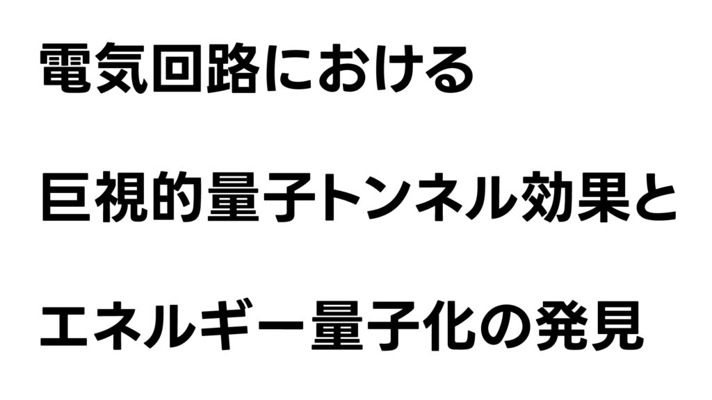 量子力学の、いわゆる物性実験に対して与えられました。その実験で、超伝導が使われてました