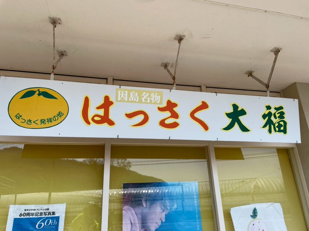また、このあたりは八朔の名産地でもあります。自転車を走らせていると、「はっさく大福」の文字を見つけました。