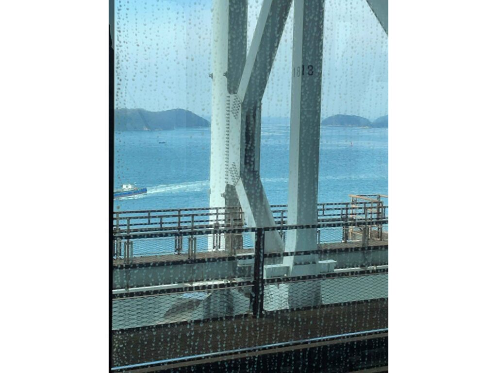 岡山から四国へ渡る道中では、瀬戸大橋を通過しました。橋の内部を電車が走る構造はやはりちょっと楽しい。