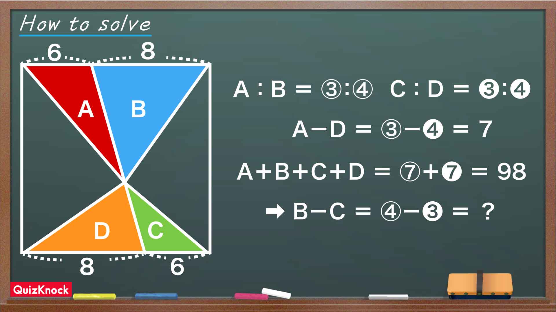 したがって、Bの面積とCの面積の差は④-❸=21となります。