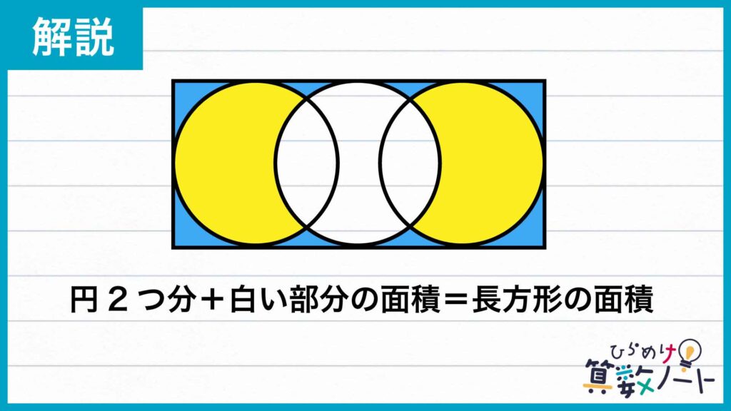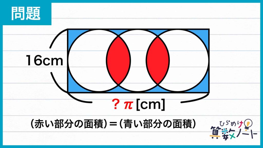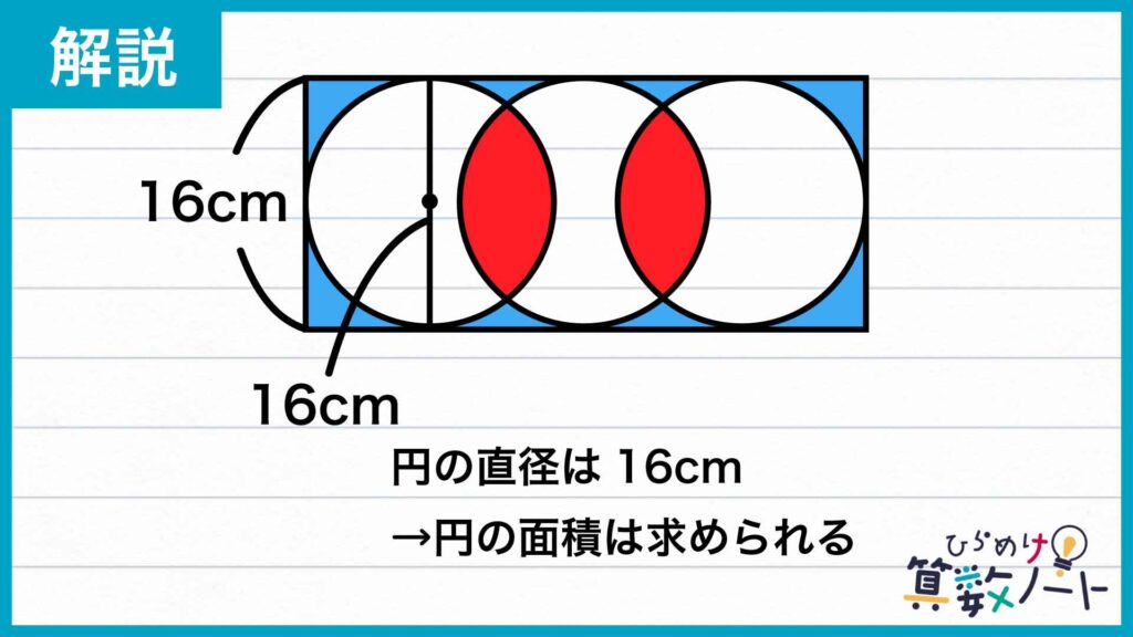 3つの円は長方形に内接しているため、円の直径は長方形の縦の長さと同じ16cmです。これで円の面積は求められます。