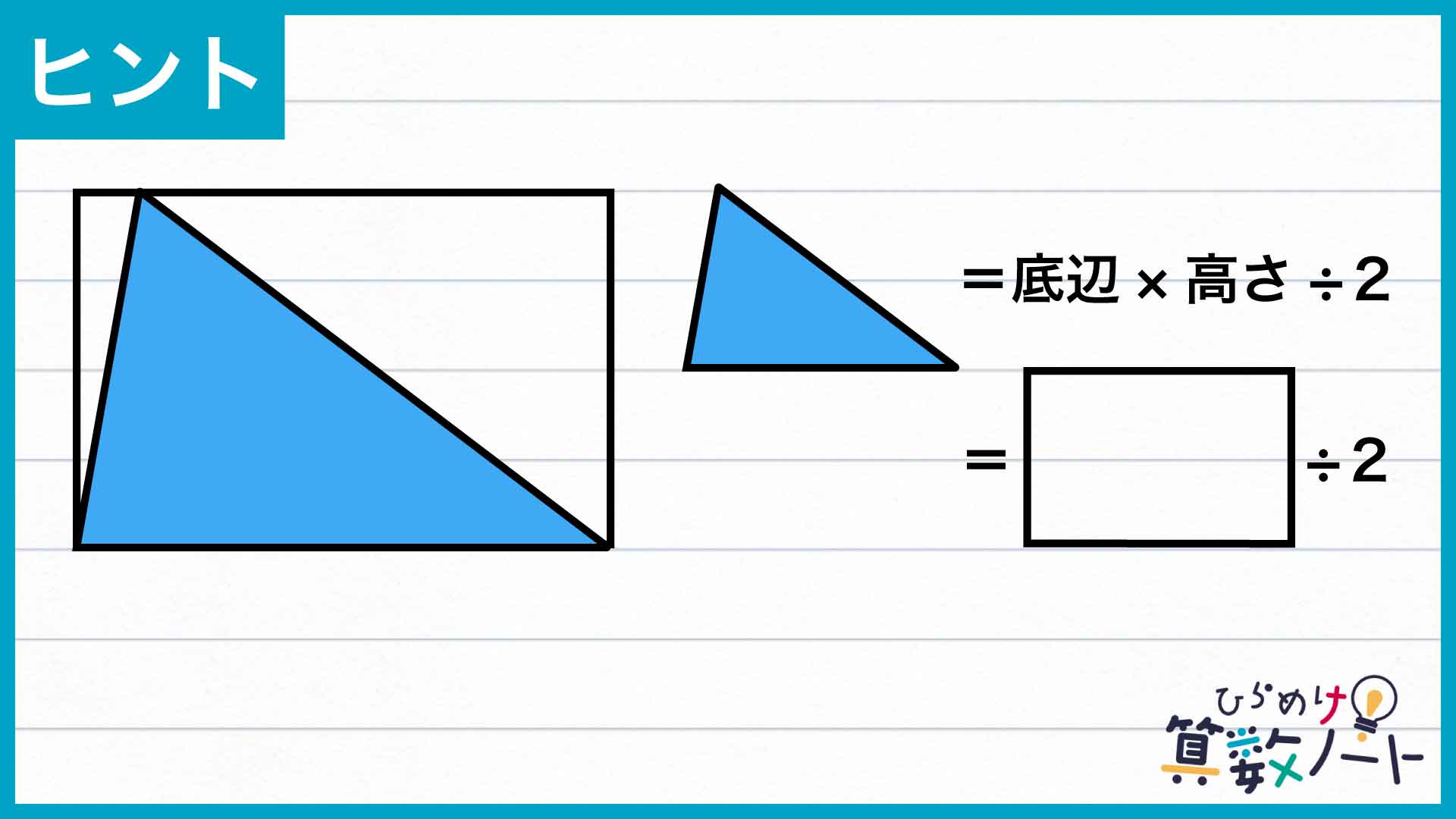 今回はあえて、ヒント少なめでいかせていただきます。「面積が半分になる」状況、イメージできましたか?