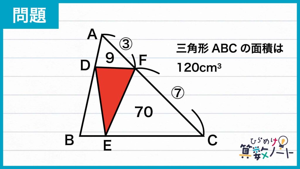 AF:FC=3:7なので、三角形ABC(120cm2)はこの比で分けられます。